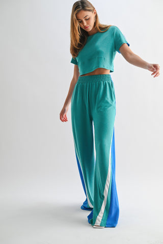 Product Description: The Active Lounge Set is the perfect blend of comfort and style, designed to seamlessly transition from relaxing at home to low-impact activities. Made in the U.S.A, this set features a premium blend of 68% polyester, 28% rayon, and 4% spandex, offering a soft, breathable feel with just the right amount of stretch. The coordinated top and bottom create a streamlined look, while the relaxed fit ensures maximum ease of movement. This versatile set is ideal for lounging, light exercise, or running errands in effortless style.